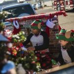 Josiah Wilson, 10, and friend Chelsea Ryan, 10 (right), shown in 2019, at the New Kensington Christmas parade in the Valley JROTC program parade float. The parade, canceled in 2020 because of the covid pandemic, is returning this year on Dec. 4.