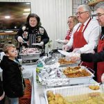 New Kensington Mayor Tom Guzzo (center), shown in 2017, serving guests at the mayor’s annual community holiday dinner. The dinner, canceled in 2020 because of the pandemic, is returning this year on Dec. 3.