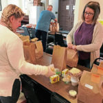 Chuck Biedka | Tribune-Review Volunteer Chelsey Hill, left, packs lunches for the Freeport Area Meals on Wheels. Volunteers are needed by the organization.