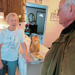 Freeport Area Meals on Wheels customer Goldie Schreckengost of Kissick Lane talks with meal driver Dan Heilman of South Buffalo on Monday.