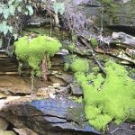 It’s exposed at “several small cliffs along the valley, which are home to calcium-loving plants such as walking fern, wild hydrangea, sharp-lobed hepatica, wild ginger, maidenhair fern and bloodroot.”