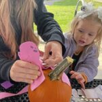 Rachel McKrell, 27, moved to Natrona, a neighborhood of Harrison, less than a decade ago. On Saturday, she sat in a park pavilion’s shade and helped her daughter Lilly , 2, use pink foam paper to transform a cantaloupe-sized pumpkin into a dinosaur.