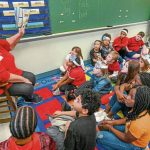 Reading to fourth graders, Dunn said they were mostly interested in the book, “What Do Teachers Do After You Leave School.” She found the students to be receptive and courteous.
