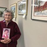 Valencia Yajko, a longtime friend of artist and educator Patricia J. Rossi, and Tommy West, president of the New Kensington Arts Center, stand by a display of Rossi’s artwork at the center on Wednesday, Sept. 21. Rossi’s art will be for sale during a memorial to her at the center from 6 to 9 p.m. on Sept. 23.