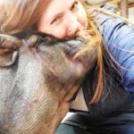 Jamie Parker gets a nuzzle from her foster pig, Betty. Parker, owner of Sweet Alchemy, a vegan bake shop in New Kensington, is organizing a Summer Pig-nic on July 31 to benefit Pittsburgh Squealers, a pig sanctuary in Frazer. Ticket orders are due Monday, July 25.