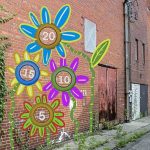 Examples included paintings of butterflies, birds, flowers and vines; photos of sunflowers and lightning over the New Kensington Bridge; window frames with potted plants; a metal box and pipes painted to look like a box of macaroni and cheese; and interactive installations such as a xylophone, wind chimes and a bean bag game using old tires painted like flowers.