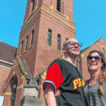 AJ Rasssau and his wife, Sarah, owners of Preserving Underground record shop in New Kensington, outside a former Presbyterian Church on Fifth Avenue in New Kensington that they bought from the Salvation Army and are turning into a business and event space called New Ken Social.