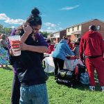 Katelynn Carney embraces Caleb Hodder, 13, during a balloon release in honor of 9-year-old Azuree Charles at East Ken Manor in New Kensington on Thursday, Sept. 22, 2022.