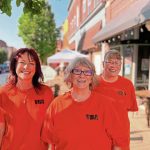Vandergrift Business Association members and Oktoberfest volunteers (from left) Rae Bruner, Karen Cramer and Laura Ciuca pose along Grant Avenue in downtown Vandergrift.