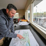 Joe Voloch, director of operations at No Offseason Sports in West Deer, shows a blueprint of the facility’s concert venue Wednesday.