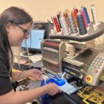 Lisa Daugherty of Springdale left an unfulfilling factory job to work in the back room of the store, embroidering on multiple machines at once.