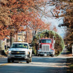Crews working on behalf of the City of Pittsburgh cut down and haul away a pine tree destined to become the city’s official Christmas tree. The tree was cut down on the property of the former St. Alphonsus Roman Catholic Church along Pittsburgh Street in Springdale.