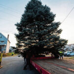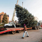 Last year’s tree, an estimated 40-foot blue spruce donated by Guardian Angels Catholic Parish, also stemmed from the former St. Alphonsus Church campus.
