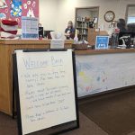 Some of the seats were removed and other furniture is taped off to encourage social distancing while sitting and reading or working on library computers. Additional displays were made to allow for quicker browsing.