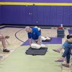 Plum EMS EMT Alex Marcelewski instructs school district staffers on CPR during a training class at the high school Aug. 17.