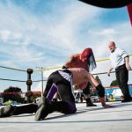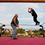 Keystone State Wrestling Alliance senior referee Shawn Patrick officiates a match between Super Hentai (in mask) and “The Regent” Joshua Kavod during a Citizens Hose Fire-Rescue-EMS fundraiser in Harrison last August.