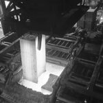 For the steel to be worked successfully, it must reach a proper, uniform temperature throughout its mass. To accomplish that, the newly cast ingot is taken to a soaking pit, which is a furnace that reheats the steel to a temperature of 2,200 to 2,300 degrees.