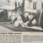 A newspaper clipping depicts a rescue in Tarentum during the St. Patrick’s Day Flood of 1936.