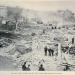 Tarentum residents survey the damage caused by a fire in December 1885 along East Sixth Avenue looking toward Corbet Street.