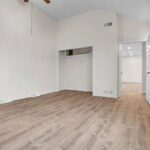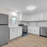 The home was remodeled in the past year. It has new vinyl floors and an open floor plan that encompasses the living room, dining room and kitchen — which is equipped with modern appliances, new cabinetry and granite countertops.