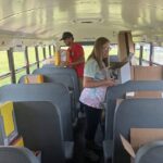 Jonathan Fulton, president of Message of Hope Ministries, bus driver Cindy Moore check on items donated to the Apollo outreach ministry’s inaugural Pack the Bus event July 20 at Owens Field. The outreach hopes to gather enough school supplies to fill 1,500 backpacks for the Apollo-Ridge School District.
