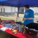 Adam Miller, vice president of Message of Hope Ministries, sorts school supplies collected for the Apollo nonprofit’s inaugural Pack the Bus event July 20 at Owens Field.