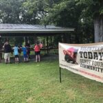 Runners take off from the starting line of the 2024 Roaring Run Race to the Moon on July 20 along the Roaring Run Trail in Apollo. About 200 runners registered for the race.