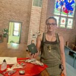 Rachel Brown of Harrison shows some of the items salvaged from the former St. Alphonsus Church in Springdale. Brown is working to sell items from the church and school to raise money for the parish.