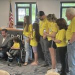 Lower Burrell Mayor Chris Fabry presents a resolution to Niko Watson, 6, and his family, declaring May 6 through May 13 as National Osteogenesis Imperfecta Week. OI is a rare gene mutation causing a deficiency in collagen, loss of bone strength and mobility issues.
