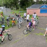 Participants in this year’s first New Ken-Arnold Slow Roll gather at the ball fields near 18th Street in Arnold on Tuesday. The bicycling event began in 2023, with bicycles available for people to use who do not have their own.