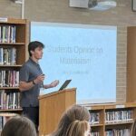 Billy Kowalkowski presents his research project May 29 during the second annual statistics symposium at Burrell High School.