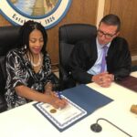 She was sworn in by District Judge Matthew V. Rudzki.