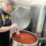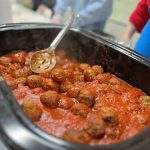 About 25 volunteers begin cooking at 7 a.m., preparing about 110 pounds of dry pasta, more than 40 gallons of tomato sauce and 720 meatballs to feed more than 300 folks.