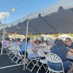 Some festival-goers stayed in the shade under the tent seeking refreshments Saturday at the St. Margaret Mary Festival of Friends in Lower Burrell.