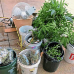 The plants, large bags of plant material and a number of gallon plastic bags holding suspected marijuana were placed in the driveway before troopers took them away.