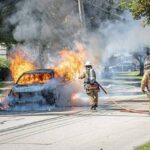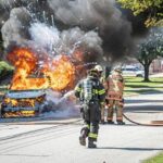 The quiet of Harrison’s Pacific Avenue neighborhood was interrupted Tuesday when a Kia SUV caught fire around 11 a.m. and quickly became engulfed in flames.