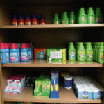 Containers are enough to wash about eight loads of laundry. Brock said the sizes are intentional because so many people access the pantry on foot.