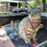 Tom Deals, of Youngstown, Ohio, sold jewelry and knives at his booth. But some people were more interested in Luna, his feline companion, who donned a pink harness and cat-sized sunglasses.