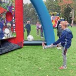“I love kicking the ball. It’s so much fun” said Cameron Patterson, 11, of Freeport as he kicked a soccer ball at a blowup game testing accuracy. Patterson is a goalie for a team in the Freeport Area Soccer Association.