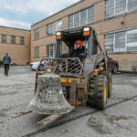 On Thursday, crews moved the large bell from atop St. Lad’s, along with the cornerstone, to a permanent display at Blessed Sacrament Church in Harrison.