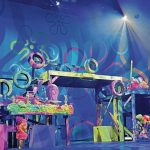 The set is splashy, colorful and bright with a fun and fresh take on Bikini Bottom.
