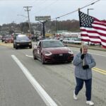 The Lower Burrell resident, whose family members have served in the military, watched the parade march through her hometown’s business district while bundled up in a heavy coat topped with a red, white and blue scarf.