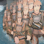 Also included are World War II-inspired posters showing Rosie the Riveter and the saying “Loose Lips Sink Ships” and re-creations of “Hillary Conquers Mount Everest” and “Gandhi on the Salt March.” The largest mural is a representation of the D-Day Landings, which takes up two whole walls.