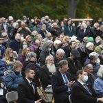 Attendees listen during a commemoration ceremony for the 11 victims killed three years ago in a shooting at the Tree Of Life Synagogue on Wednesday, Oct. 27, 2021 in Schenley Park.