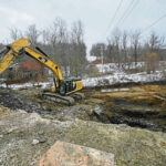 Heavy machinery moves dirt behind Monday’s Union Restaurant on Dec. 10, 2024, as the establishment reopened following a sinkhole accident behind the property. Elizabeth Pollard was looking for her cat on the evening of Dec. 2, 2024, when the ground gave way and she fell into a sinkhole that opened into an abandoned mine. The 64-year-old Unity resident died from her injuries.