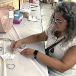 Art educator Erin Tiedeman of Bullskin, Fayette County, judges jewelry made by Westmoreland County 4-H members at the Westmoreland Fair on Friday.