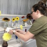 4-H Superintendent Natalie Evans of Monroeville attaches a ribbon to a single flower display submitted by a Westmoreland County 4-H member at the Westmoreland Fair on Friday.