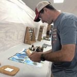 Jake Desko of Scottdale judges wooden cutting boards submitted by 8- and 9-year-old Westmoreland County 4-H members at the Westmoreland Fair on Friday.