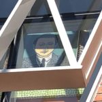 Each Friday afternoon, he places a different piece in the large rectangular window.