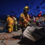 Firefighters with City of Greensburg Volunteer Fire Department and Hempfield Township Volunteer Fire Department showcase the use hydraulic tools to cut apart a car as they conduct an emergency vehicle rescue demonstration for a crowd of families gathered on Tuesday for the 24th annual Hempfield-Greensburg Fire Prevention Day in the parking lot of Westmoreland Mall.